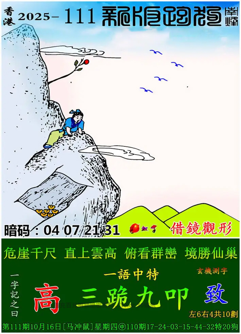 113期一字記之曰:【照】晨光初照,金鋪碧浪,溪喧石上,鷗逐霞光《軒》